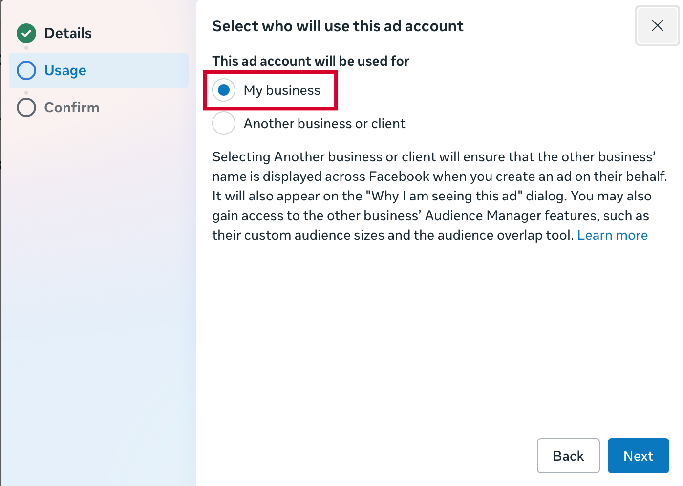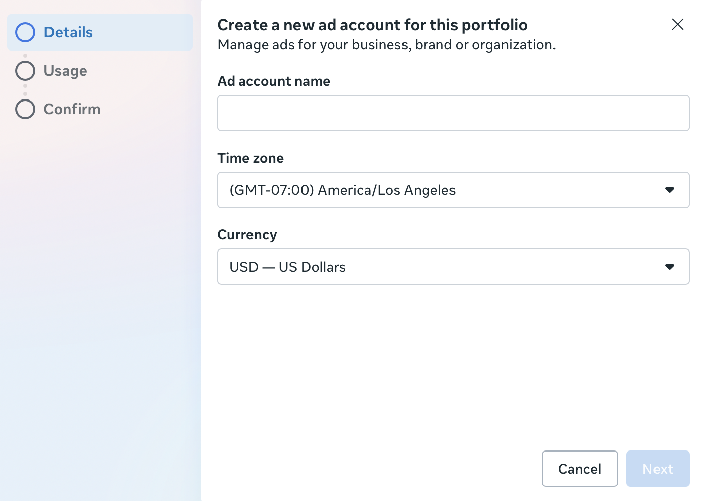 Si ya tienes tu Portafolio Comercial en Meta, crear tu Cuenta de Anuncios es lo ideal. Una Cuenta de Anuncios propia te permite tener control sobre los anuncios que se realizan en tus diferentes perfiles comerciales, tanto de Instagram como Facebook, y tus métodos de pago, además de brindarte detalle sobre cada transacción, facturación y presupuesto máximo que estés dispuesto a pagar de manera mensual.