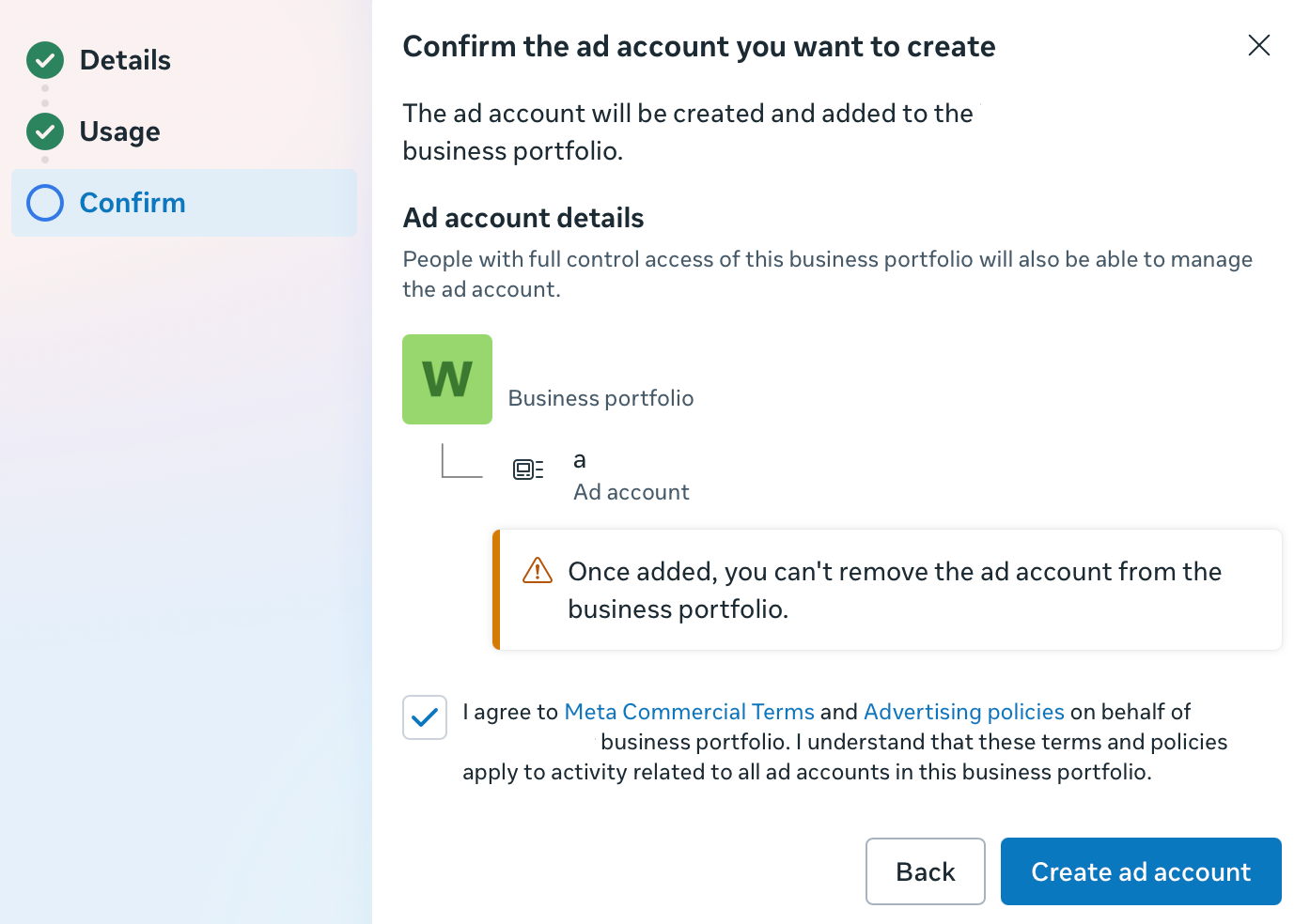 Ahora podrás agregar a una persona dentro de tu Portafolio Comercial o dar permisos a una agencia para manejar esa cuenta de anuncios.