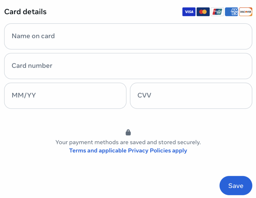 Completa los datos de la tarjeta y listo. Tu cuenta de anuncios ya quedará configurada.